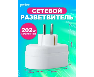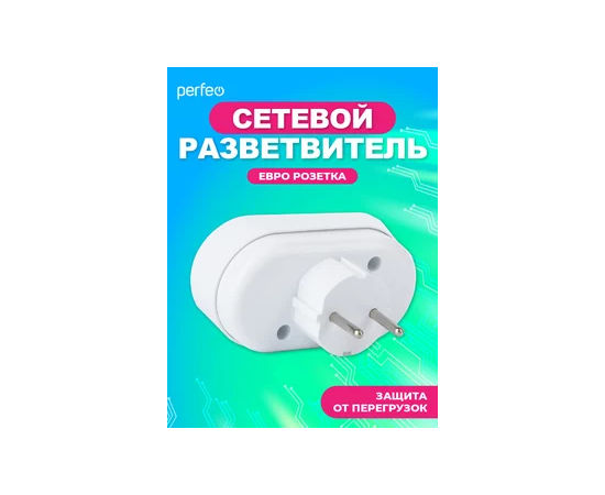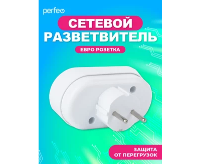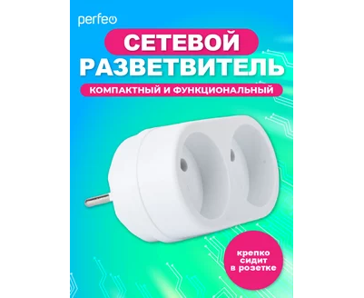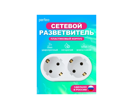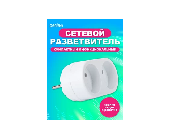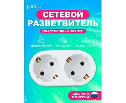 Сетевой разветвитель Perfeo "RU POWER'' 2 гнезда, 16А, с заземлением, (2Т2), белый