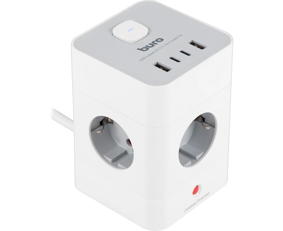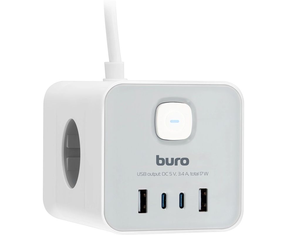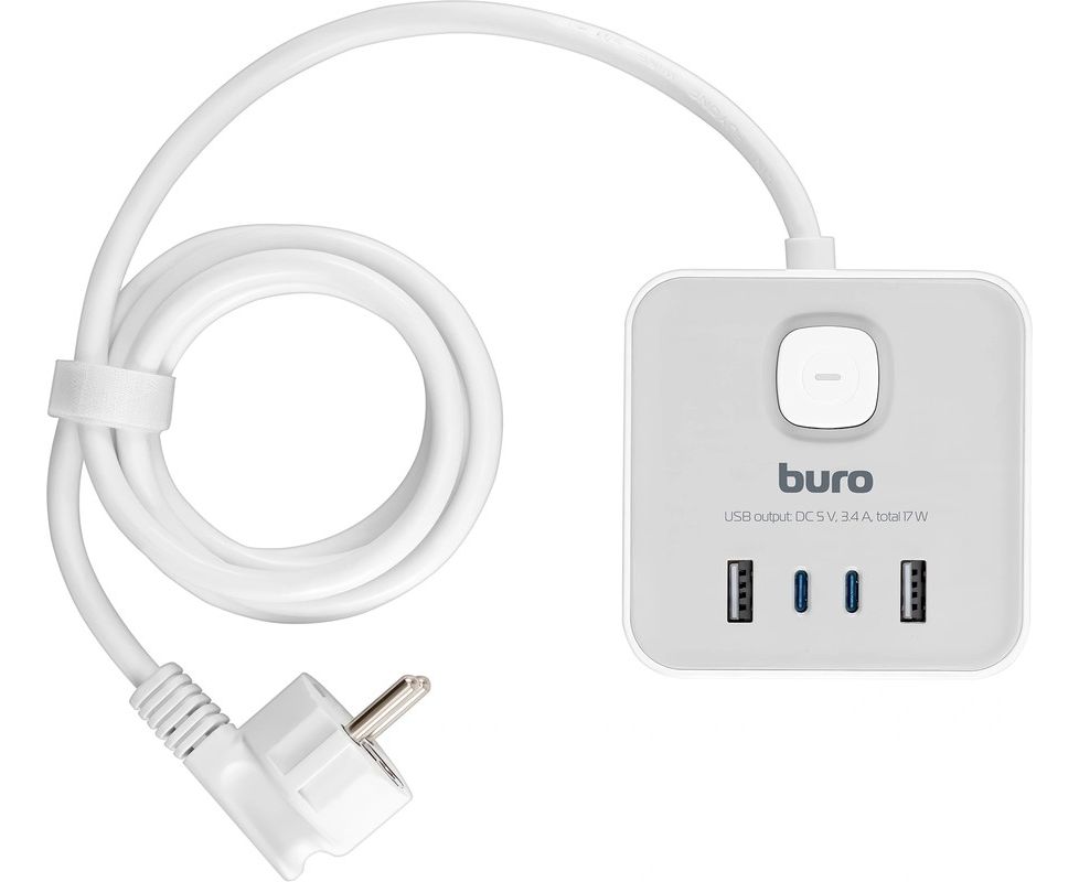 Сетевой удлинитель Buro BU-PTE4.1UC-W, 1.5м, белый