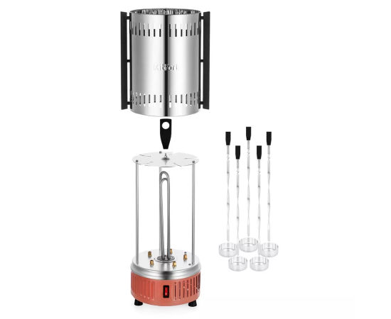 Инфракрасный нагревательный элемент обеспечивает такой же нагрев, какой дают угли в обычном мангале, а автоматическое вращение шампуров позволяет мясу оставаться сочным внутри и равномерно обжаренным снаружи!