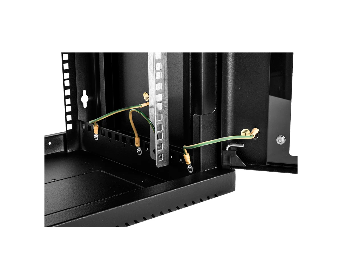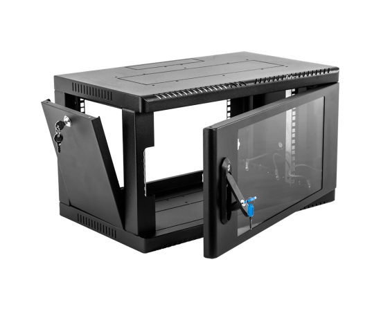 Шкаф коммутационный ЦМО ШРН-6.500-9005 настенный 6U 600x500мм пер.дв.стекл 200кг черный 470мм 180град.