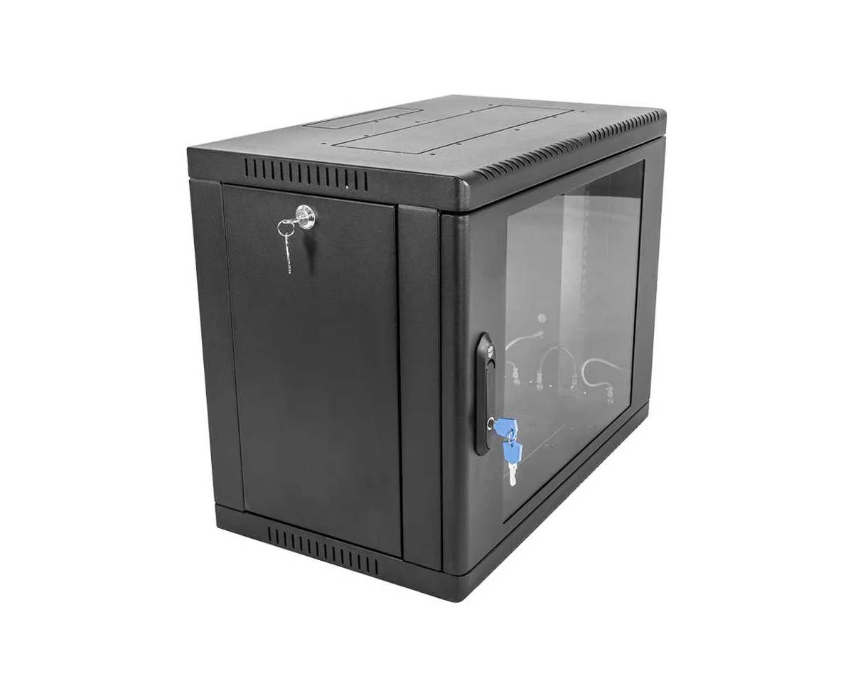 Шкаф коммутационный ЦМО ШРН-9.350-9005 настенный 9U 600x350мм пер.дв.стекл 200кг черный 300мм 12кг 180град. 479мм IP20 металл