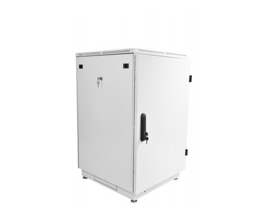 Конструкция шкафа разборная каркасная. Основные детали — основание, крыша и две сварные рамы, соединяемые комплектом швеллеров. Высокая жёсткость изделия обеспечивается крепёжными элементами и улучшенной конструкцией швеллеров рамы. В новой модификации шкафа используется металл с более подходящими физико-механическими свойствами. Это позволило уменьшить толщину металлических частей до 1,5 мм и снизить общую массу изделия. При этом данный напольный шкаф 18U выдерживает на 17% большую распределённую нагрузку — 270 кг.