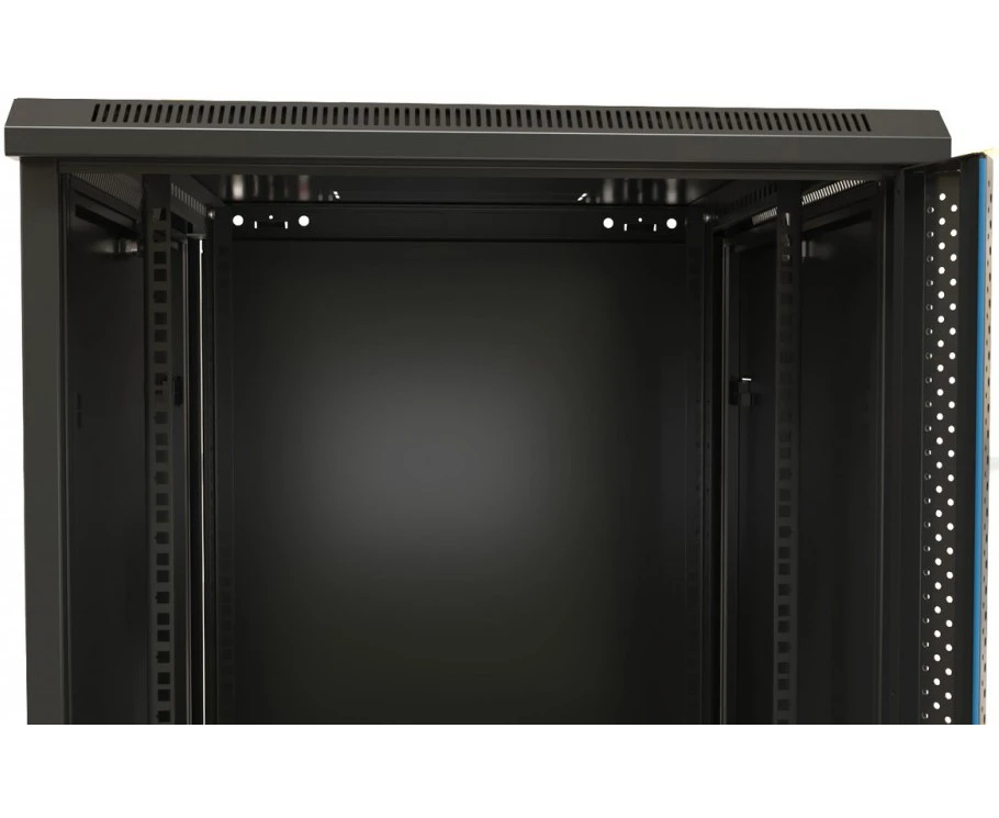 холоднокатаная сталь (SPCC), толщина стальных компонентов: рама каркаса, нижняя панель, задняя панель, передняя дверь, боковые панели, верхняя панель - 1,2 мм; горизонтальный монтажный профиль - 1,5 мм; 19" монтажный профиль - 2,0 мм