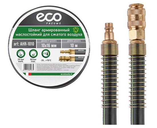 Шланг маслостойкий армированный 10х16 мм, 10 м ECO AHR-1010 оборудован быстросъемными соединениями ПАПА и МАМА.