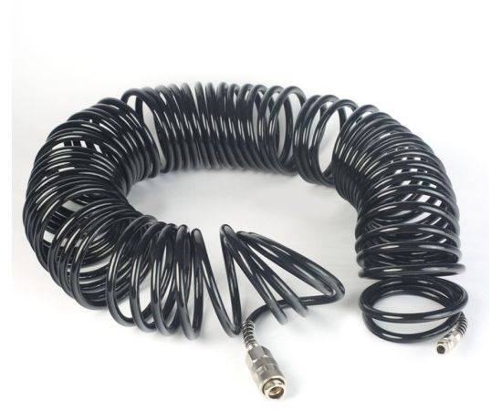 Описание: Спиральные шланги изготовлены из полиамидного материала в форме спирали; устойчивы к низким температурам; эластичны; оснащены быстросъёмными штуцерами.