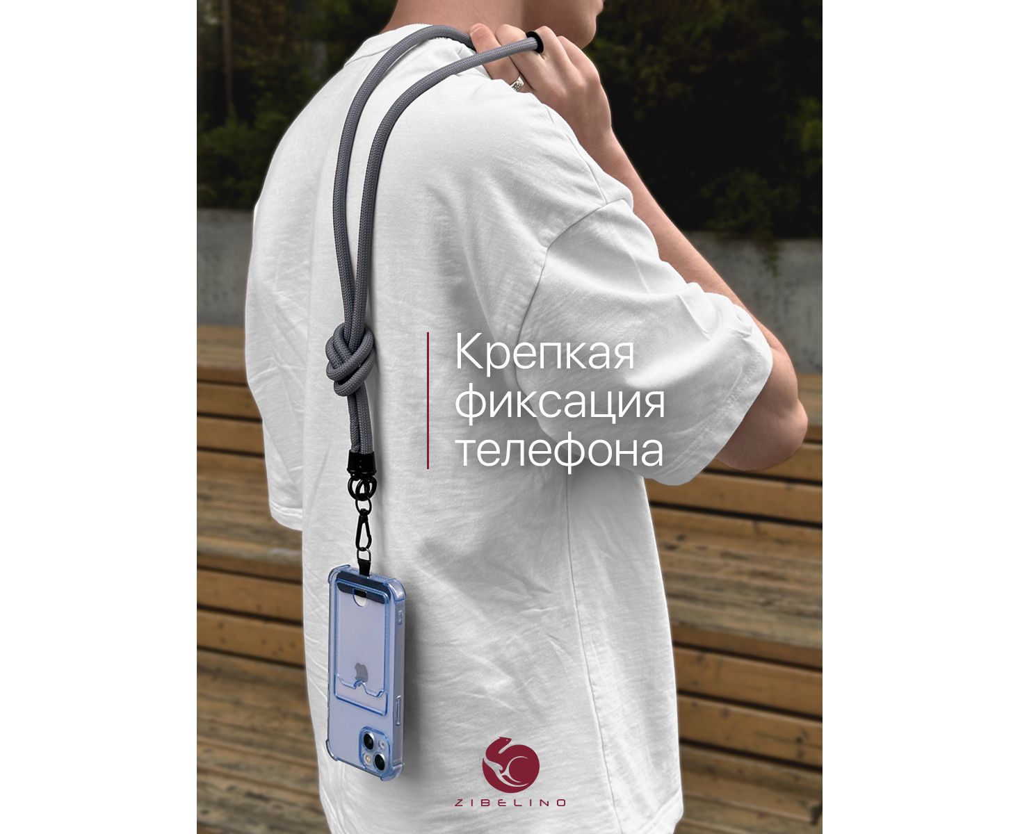 - Регулируемая длина. Шнурок можно носить разными способами: на шее, через плечо, на руке, на запястье или как кросс боди для телефона. Длина регулируется при помощи петли для аксессуаров.