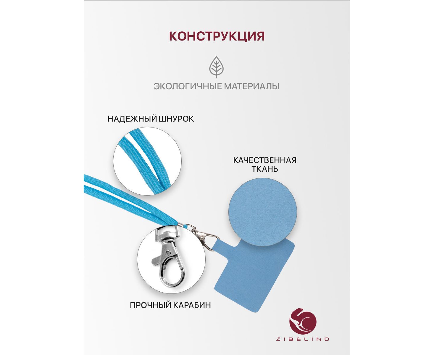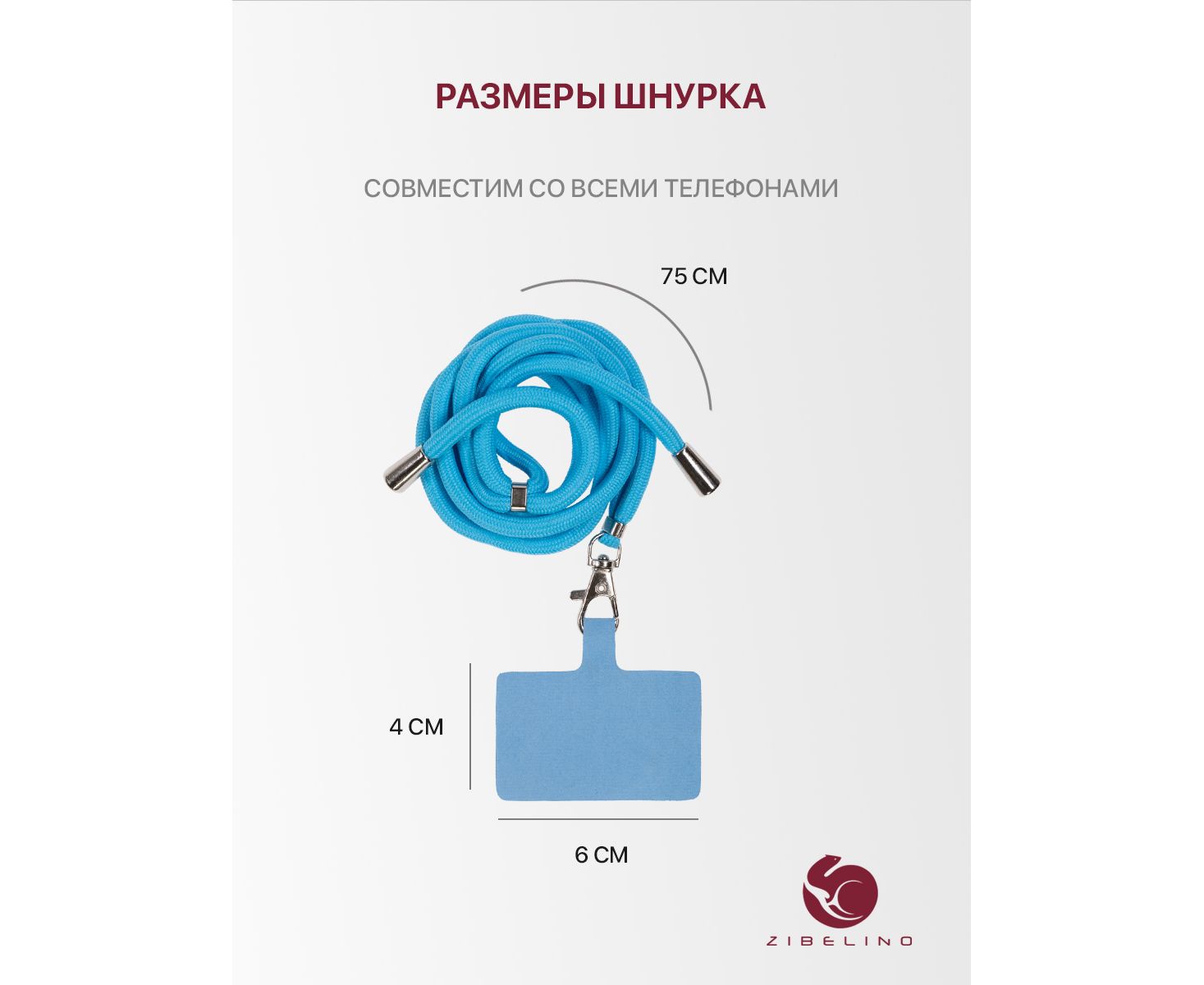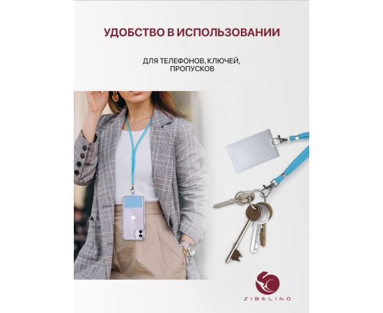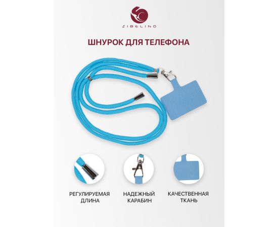 Шнурок универсальный на шею для телефона, для ключей, для бейджа, с карабином (голубой)