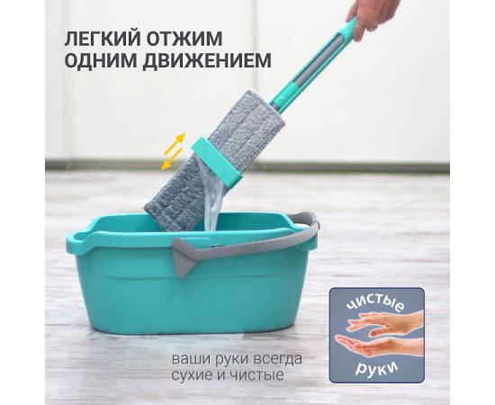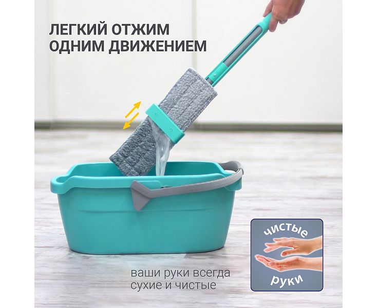 Швабра Easy Clean предназначена для влажной уборки любых видов напольных покрытий и относится к системе «чистые руки». Благодаря встроенному механизму отжима, уборка проходит на много быстрее и легче, а руки не страдают от моющих средств. Система «отжима» одним движением отжимает насадку, не повреждая ее и делая практически сухой! Швабра идеально подходит для уборки квартир до 100 кв.м. Мягкая ручка из вспененного пластика, удобная для захвата двумя руками, защищает руки от образования мозолей. Швабра Easy Clean модель HM-62 производится из ударопрочного ABS пластика. Равномерный прижим платформы к полу позволяет делать уборку без разводов. Насадка швабры из микрофибры обладает хорошей способностью впитывать и удерживать воду, легко отжимается, не впитывает запахи, прочно крепится к платформе швабры на липучки и выдерживает до 600 циклов уборки. Насадку можно стирать в стиральной машинке при температуре 60 градусов. После использования швабру можно хранить в вертикальном положении - система отжима в крайнем положении выполняет функцию опоры. На ручке швабры есть петля для подвеса на крючок, что также позволяет хранить ее компактно.