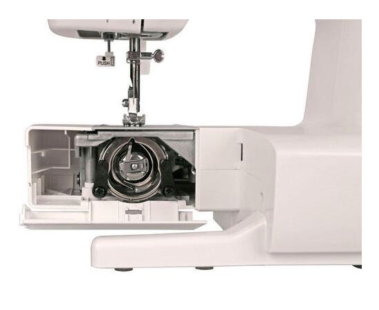 Дополнительно освещение, реверс, регулятор натяжения нити, регулировка ширины зигзага, регулировка длины стежка, максимальная скорость 500 об/мин, дополнительный подъем лапки, горизонтальное расположение катушки, встроенный нитеобрезатель