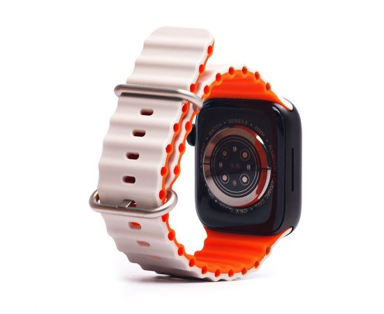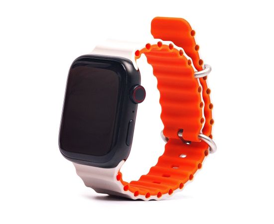 Силиконовый браслет Ocean Band для Apple Watch 42/44/45/49/ для Smart X8 Ultra, Smart GS8 Ultra / Оранжевый-белый