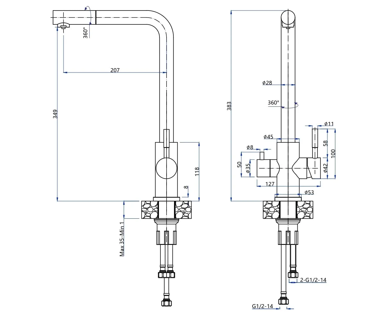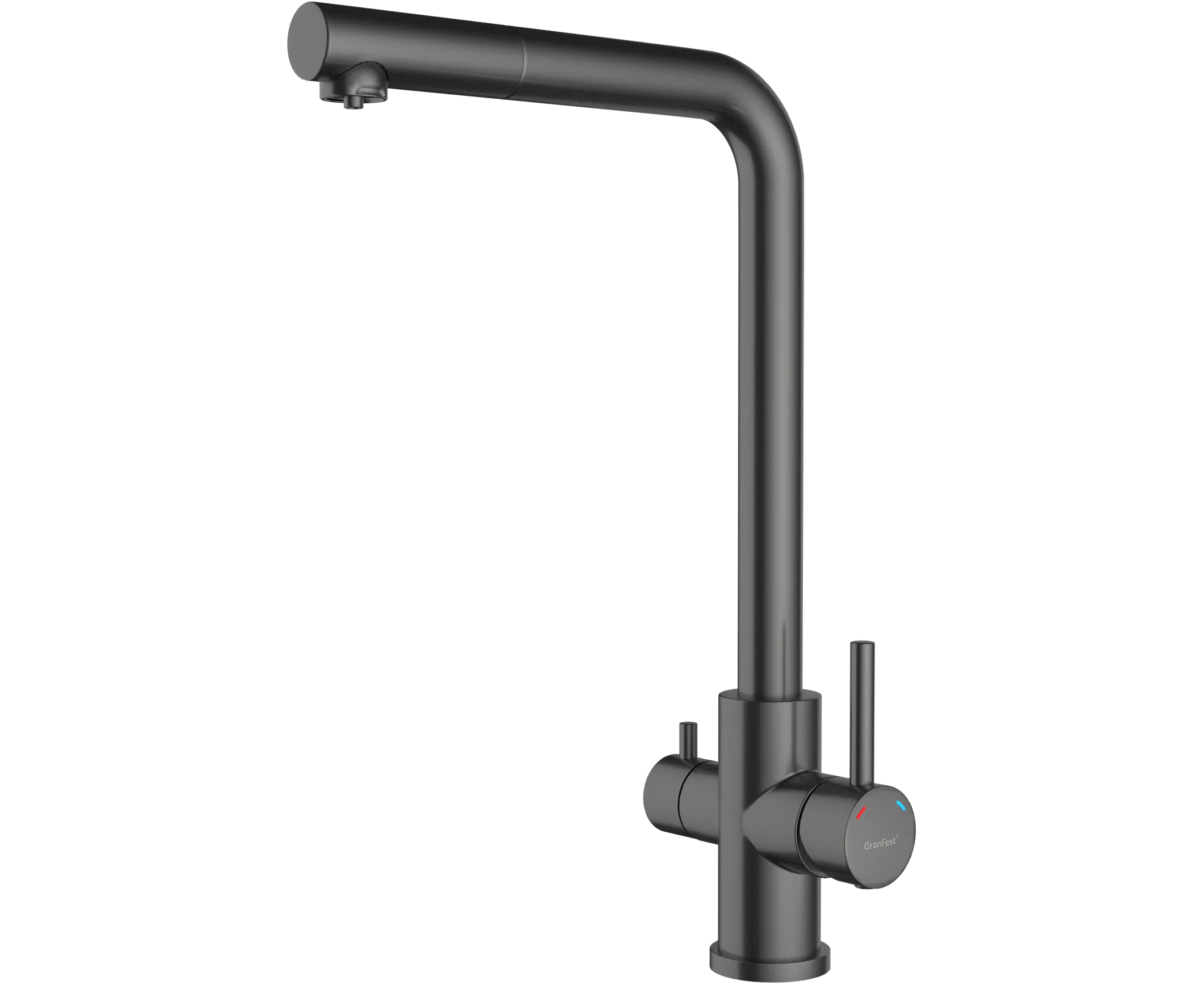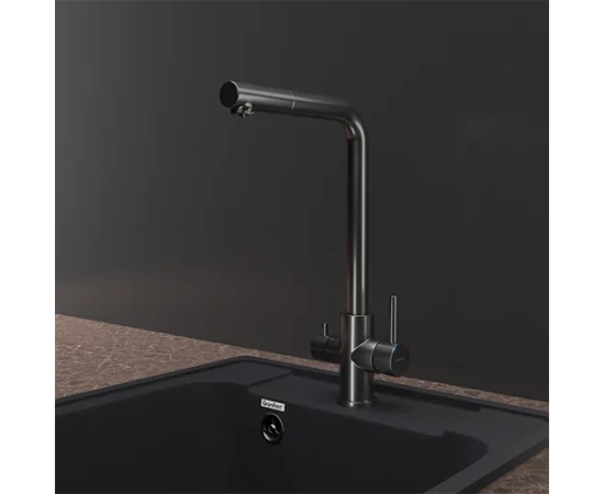 Смеситель для кухни GRANFEST Z-5421 PVD graphite quarz Г-образный, нержавеющая сталь, поворотный излив