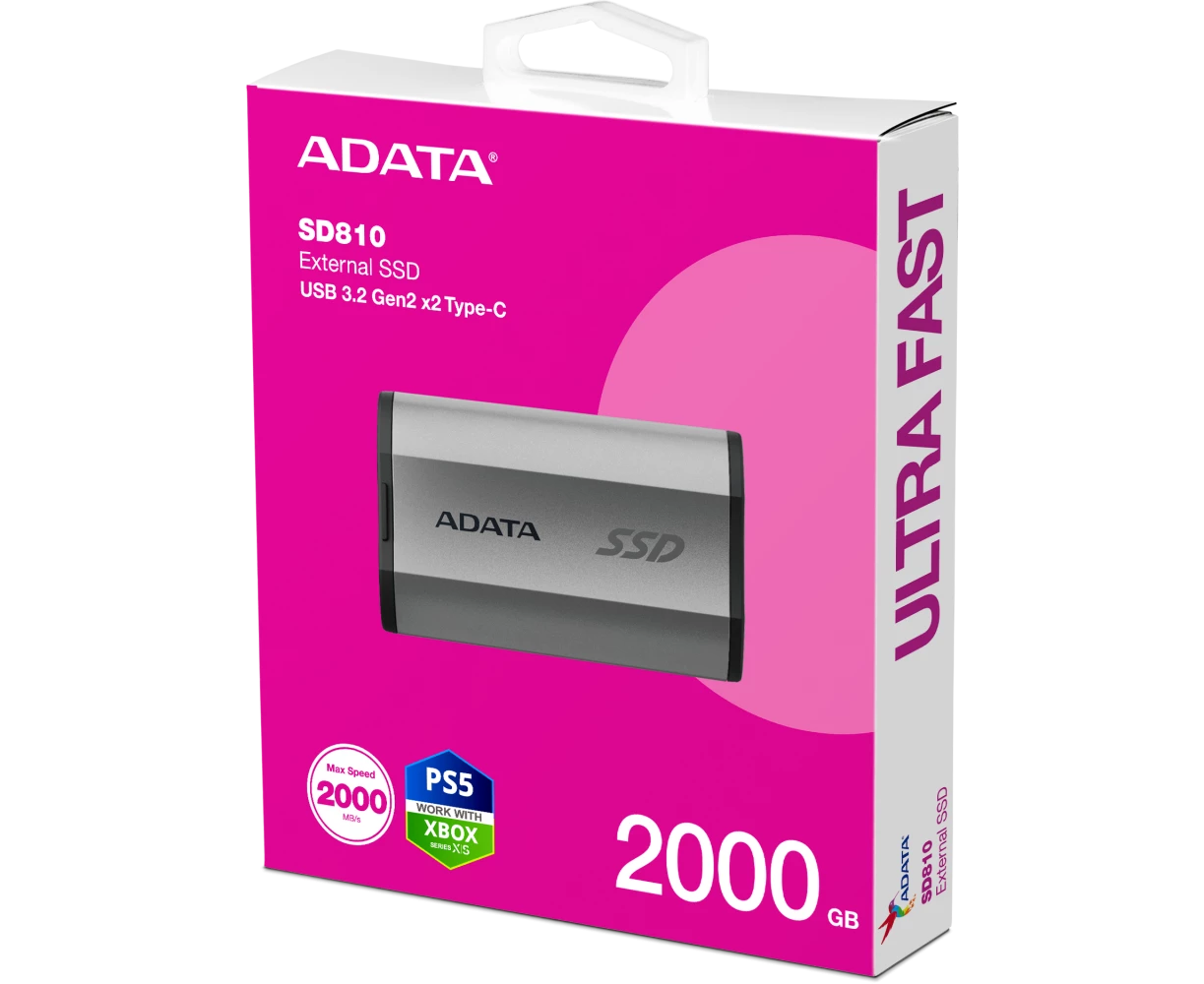 SSD A-DATA SD810 (SD810-2000G-CSG) 2TB, External, USB 3.2 Type-C, R/W -2000/2000 MB/s серый