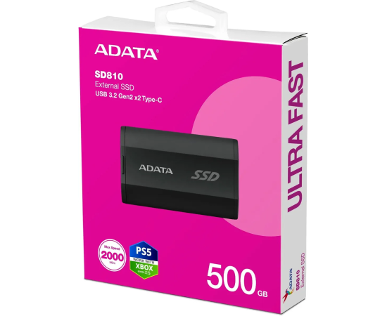 SSD ADATA SD810 (SD810-500G-CBK) 500GB, Type-C, USB 3.2 Gen2x2, up to R/W 2000/2000 MB/s