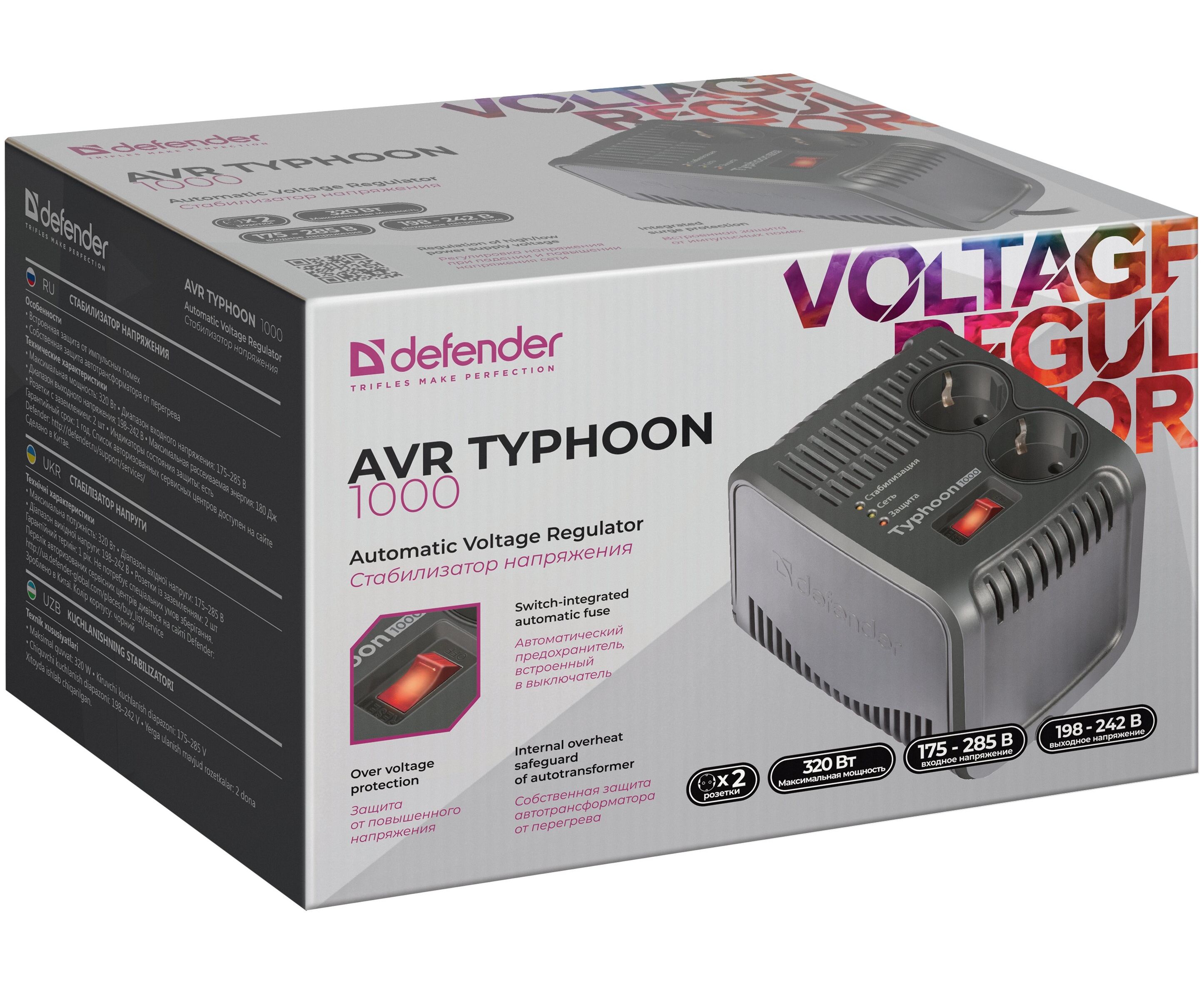 Стабилизатор напряжения AVR Typhoon 1000 320 Вт, 2 розетки (99033)