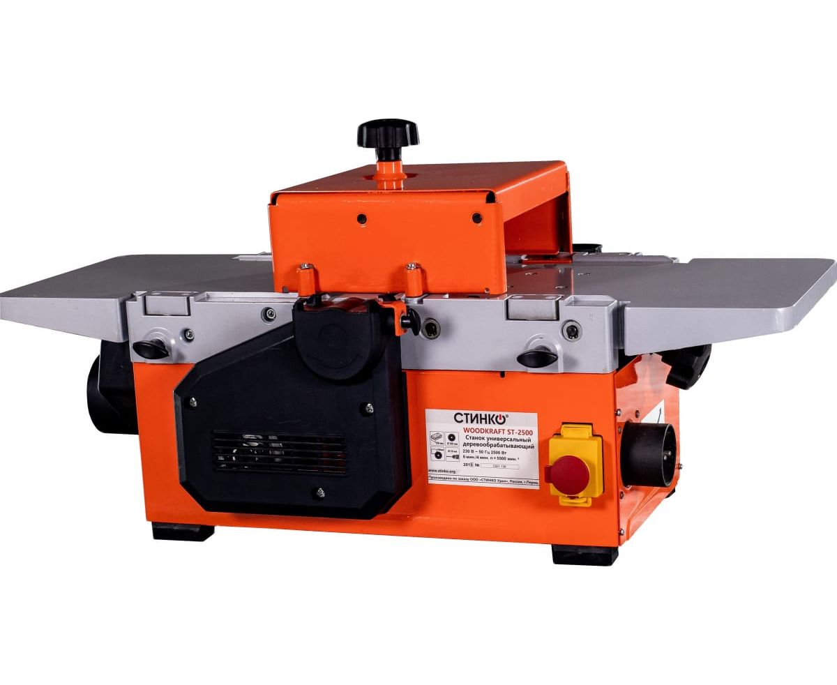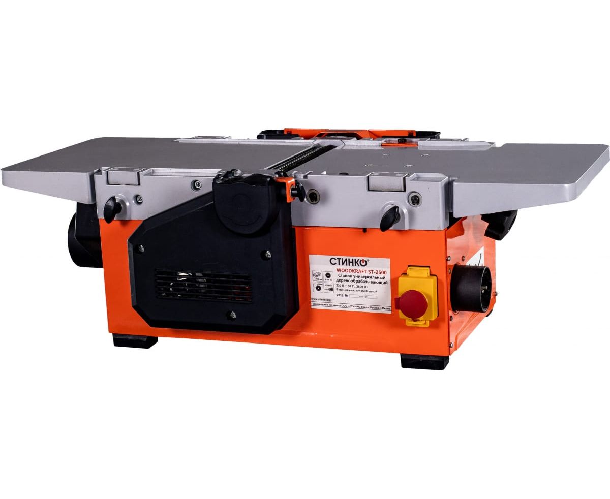 Универсальный деревообрабатывающий станок STINKO WOODKRAFT ST-2500 используется для выполнения строгания (фугования), распиловки, фрезерования и сверления деревянных заготовок в домашних условиях.