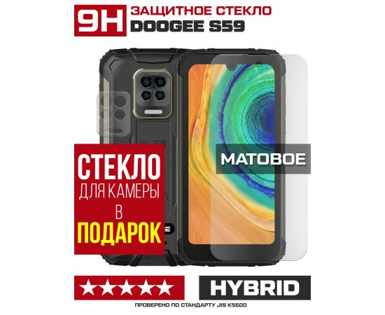 Стекло защитное гибридное МАТОВОЕ Krutoff для Doogee S59 + защита камеры (2 шт.)