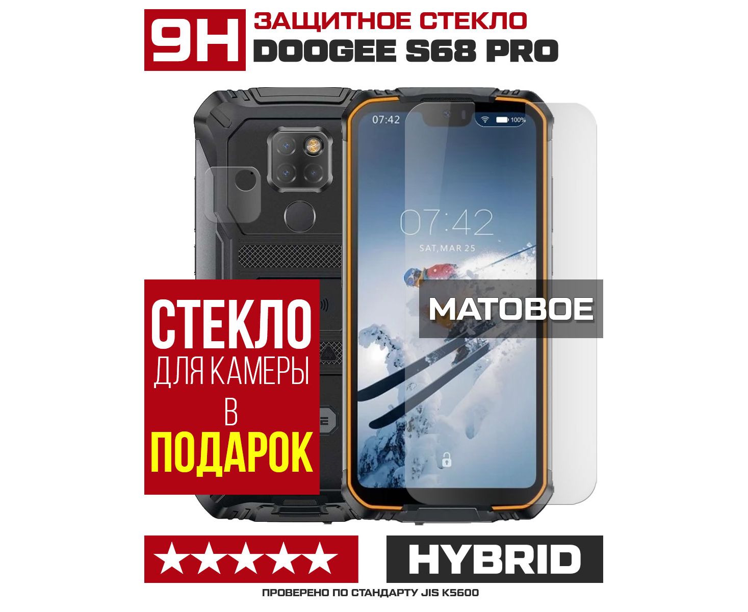 Стекло защитное гибридное МАТОВОЕ Krutoff для Doogee S68 Pro + защита камеры (2 шт.)