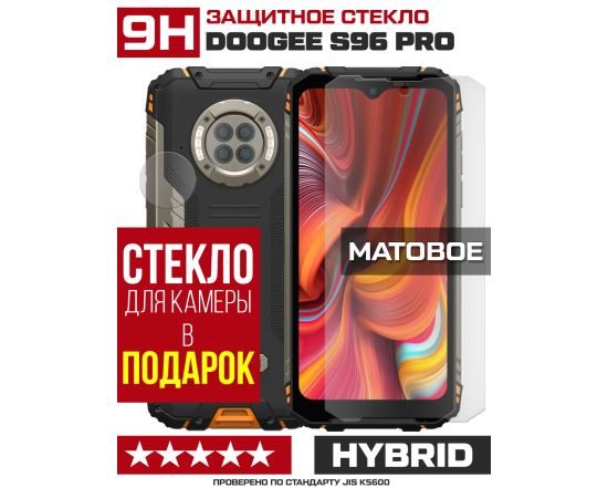 Стекло защитное гибридное МАТОВОЕ Krutoff для Doogee S96 Pro + защита камеры (2 шт.)