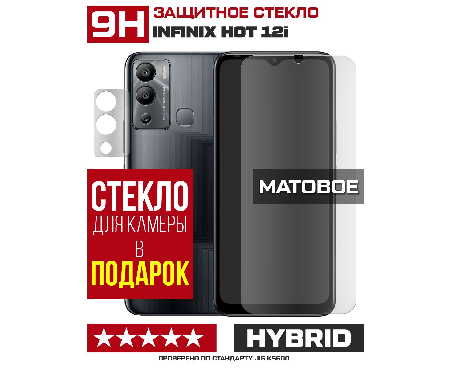 Стекло защитное гибридное МАТОВОЕ Krutoff для INFINIX Hot 12i + защита камеры (2 шт.)