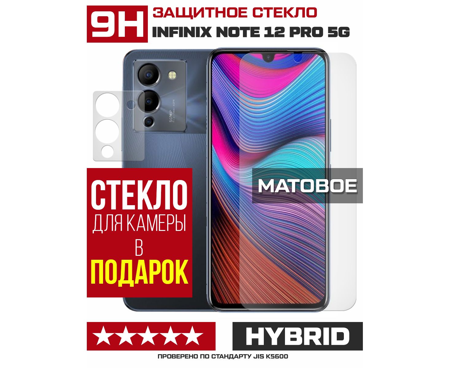 Стекло защитное гибридное МАТОВОЕ Krutoff для INFINIX Note 12 Pro 5G + защита камеры (2 шт.)