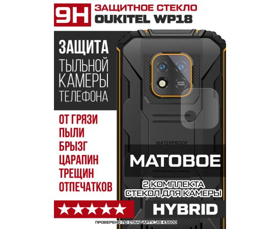 Стекло защитное гибридное МАТОВОЕ Krutoff для камеры Oukitel WP18 (2 шт.)