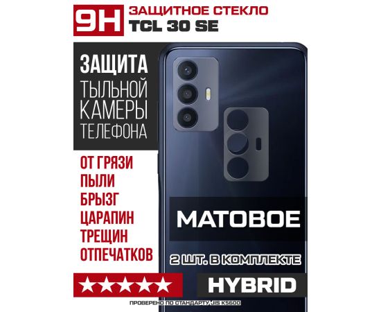 Стекло защитное гибридное МАТОВОЕ Krutoff для камеры TCL 30 SE (2 шт.)