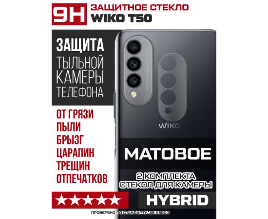 Стекло защитное гибридное МАТОВОЕ Krutoff для камеры Wiko T50 (2 шт.)