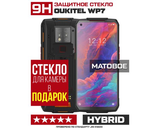 Стекло защитное гибридное МАТОВОЕ Krutoff для Oukitel WP7 + защита камеры (2 шт.)