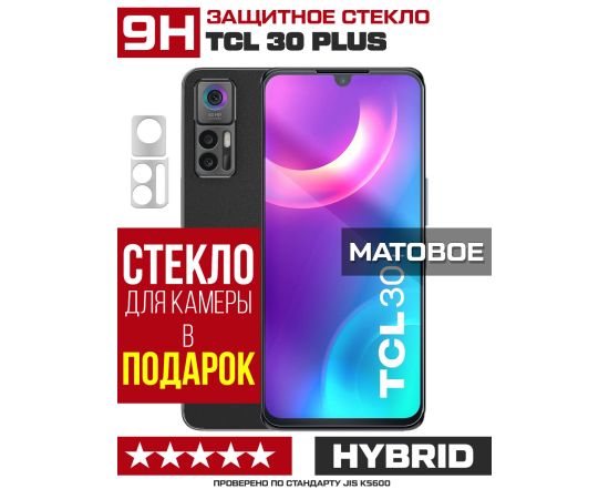 Стекло защитное гибридное МАТОВОЕ Krutoff для TCL 30 Plus + защита камеры (2 шт.)