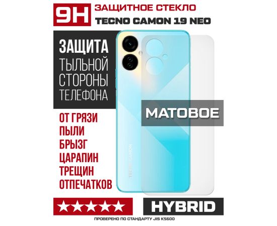 Стекло защитное гибридное МАТОВОЕ Krutoff для Tecno Camon 19 Neo задняя сторона