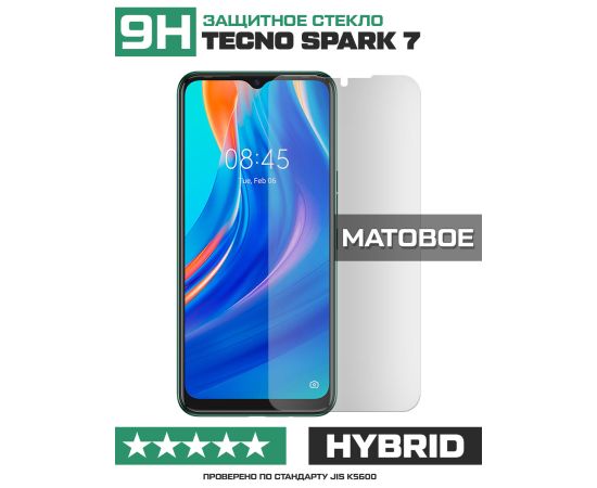 Стекло защитное гибридное МАТОВОЕ Krutoff для Tecno Spark 7