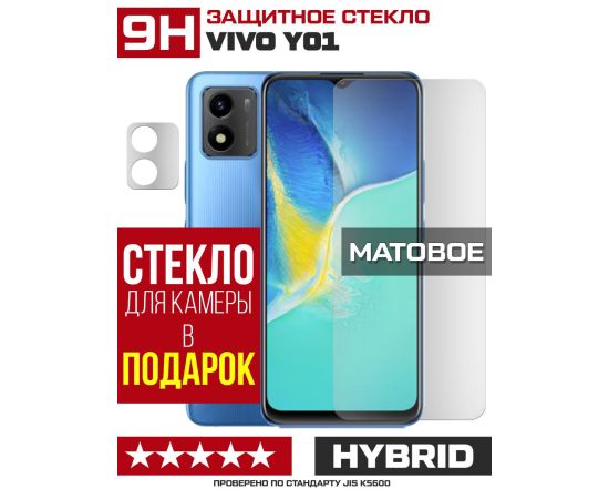 Стекло защитное гибридное МАТОВОЕ Krutoff для Vivo Y01 + защита камеры (2 шт.)