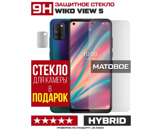 Стекло защитное гибридное МАТОВОЕ Krutoff для Wiko View 5 + защита камеры (2 шт.)