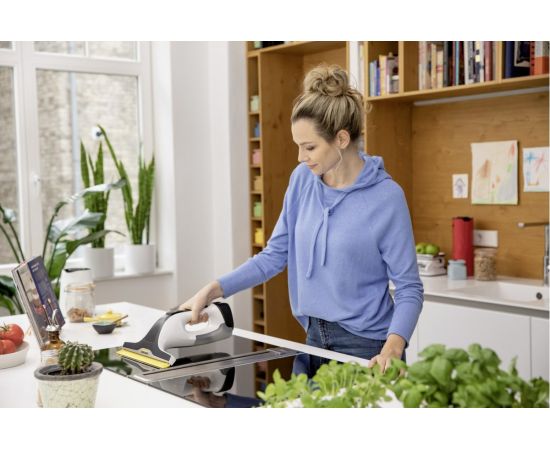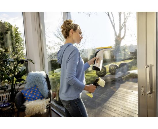 Особенностями оконного пылесоса WV 4-4 Plus являются использование сменных аккумуляторов, обеспечивающих продолжительную непрерывную работу, наличие светодиодного индикатора состояния аккумулятора и инновационная силиконовая стяжка, с помощью которой можно очищать оконные стекла до самого нижнего края.