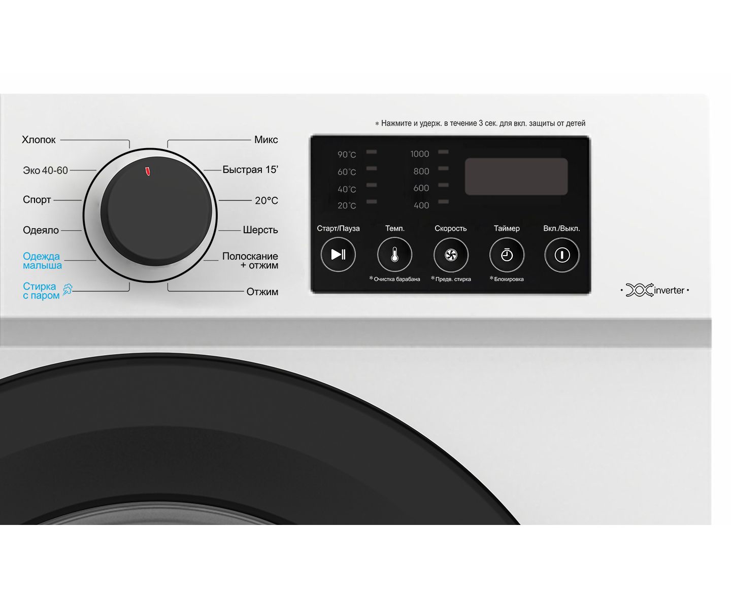 Отложенный старт, Очистка барабана, Блокировка от детей