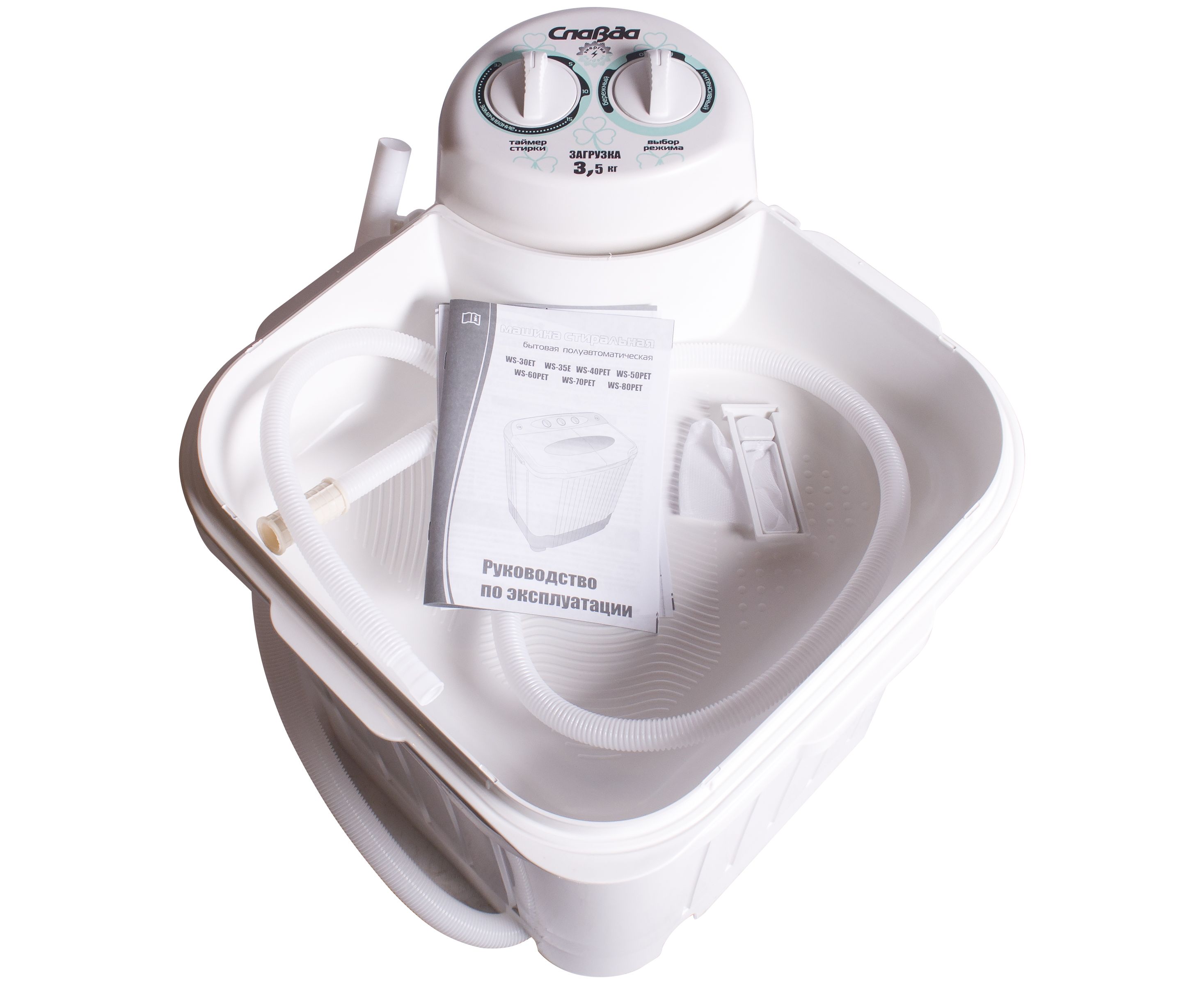 Комплектация Стиральная машина, крышка-тазик, шланг наливной, фильтр, руководство по эксплуатации, упаковка
