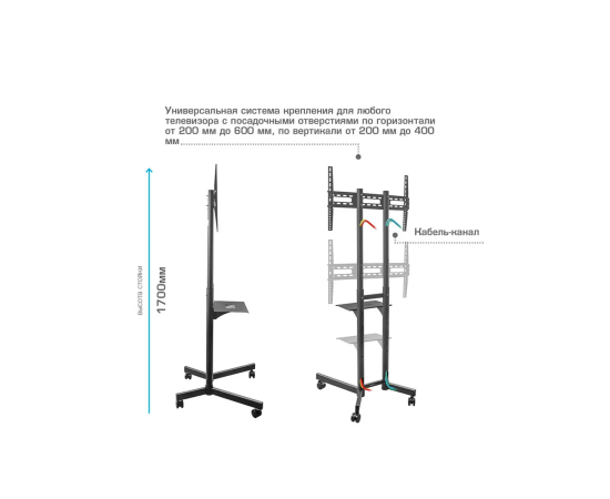 Стойка для телевизора Kromax Omega-15 черный 32"-70" макс.50кг напольный мобильный