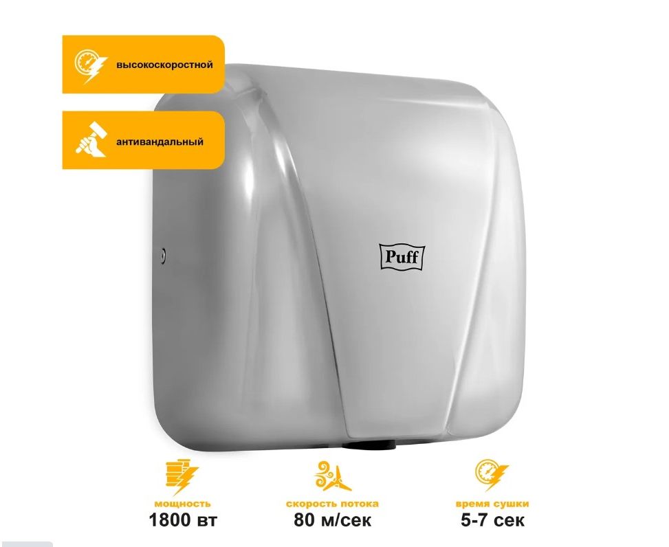 Антивандальный высокоскоростной электросушитель для рук Puff-8800С New.