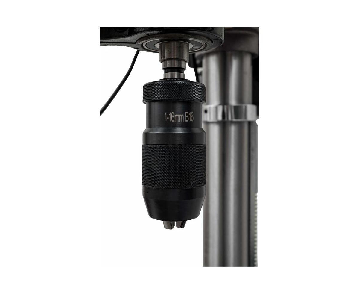 Сверлильный станок Gigant DP1016FV представляет собой надежное и функциональное оборудование для обработки различных материалов, таких как дерево и металл. С мощностью 550 Вт и асинхронным электродвигателем, он обеспечивает стабильную работу при напряжении 220 В. Частота вращения шпинделя варьируется от 340 до 2200 об/мин, что позволяет адаптировать станок под различные задачи. Рабочий стол размером 243х243 мм и максимальный диаметр сверла 50 мм делают его универсальным инструментом для различных проектов. Наличие лазера и подсветки рабочей зоны способствует точности и удобству в эксплуатации.