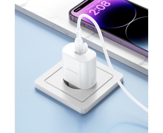 СЗУ 1Type-C 3.0A QC3.0 PD 25W быстрая зарядка для Lightning 8-pin Type-C Borofone BA82A (White)