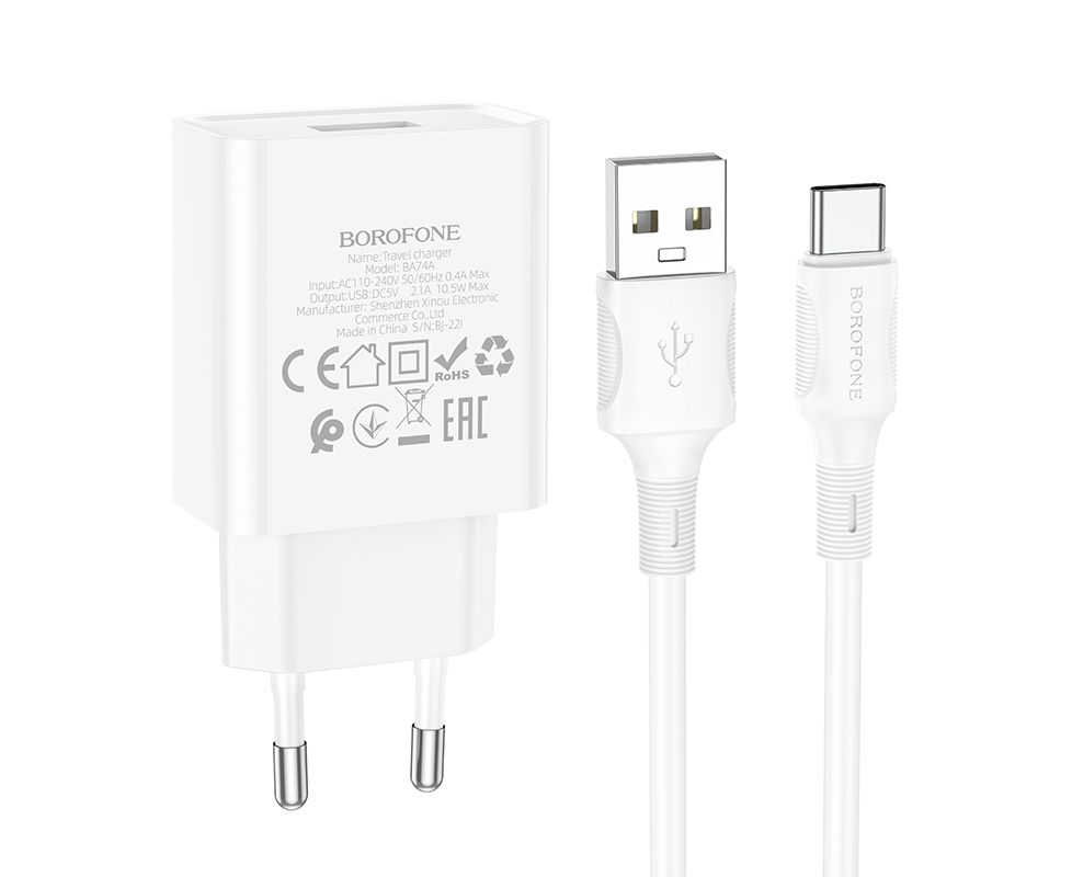 СЗУ 1USB 2.1A для Type-C Borofone BA74A 1м (White)
