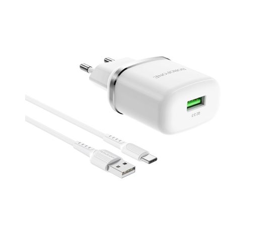 СЗУ 1USB 3.0A QC3.0 быстрая зарядка для Type-C Borofone BA36A 1м (White)