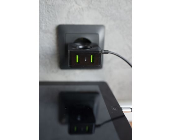 Материал: АВС-пластик Количество разъемов USB: 2 Вход: 100В/240В. Максимальный выходной ток: 2.1 A Кабель: встроенный Lightning 8-pin (1 м) Комплектация: сетевое зарядное устройство, держатель для кабеля, буклет Цвета: Black, White