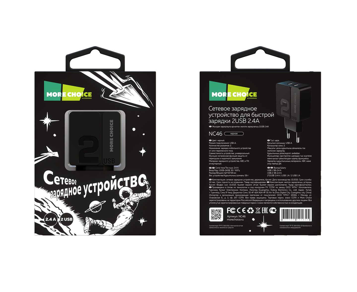 СЗУ 2USB 2.4A More choice NC46 (Black Black)