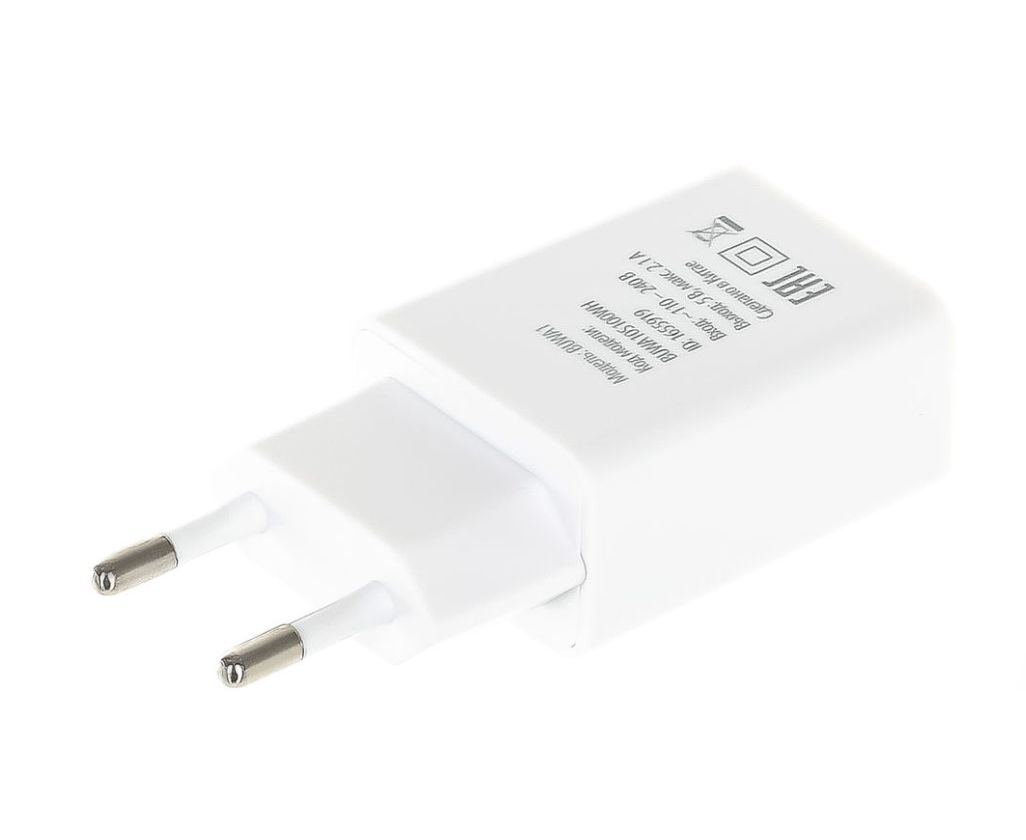Универсальное сетевое зарядное устройство с выходом USB-A с максимальной силой тока 2.1 А, позволяющее заряжать мобильные устройства разных производителей.