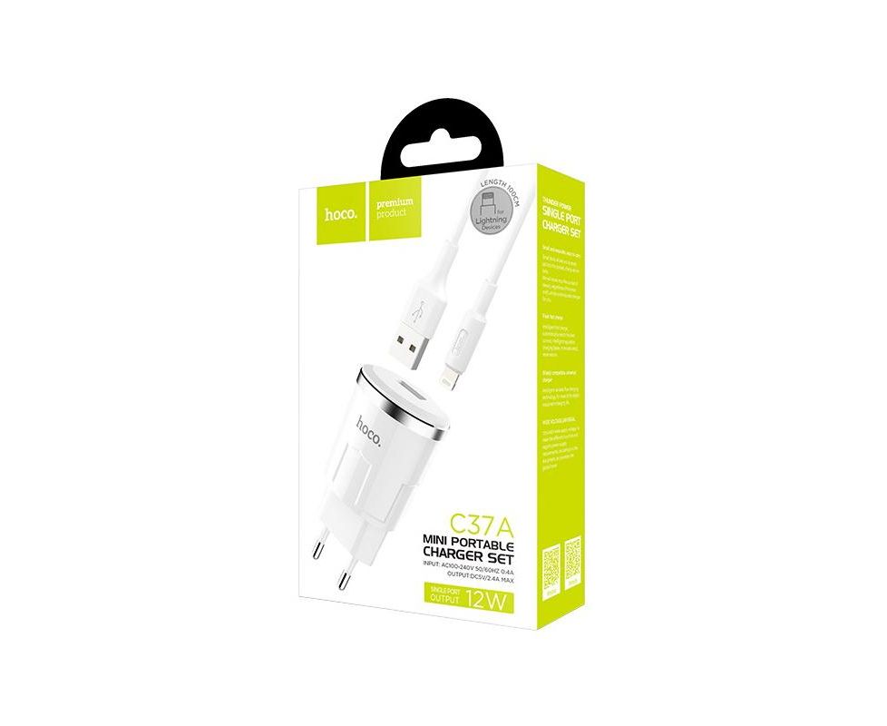 СЗУ HOCO C37A Thunder power single port + lightning, white