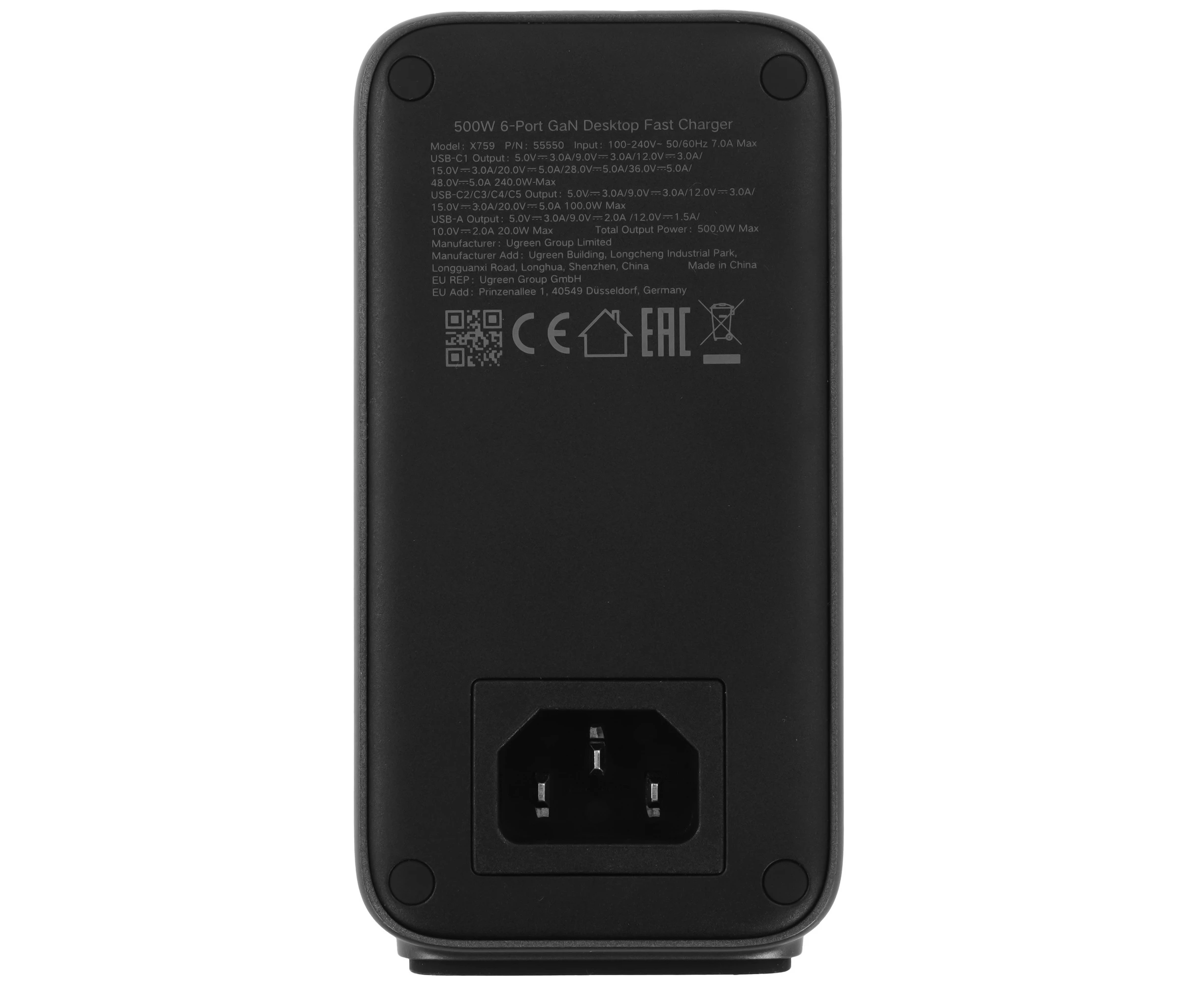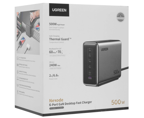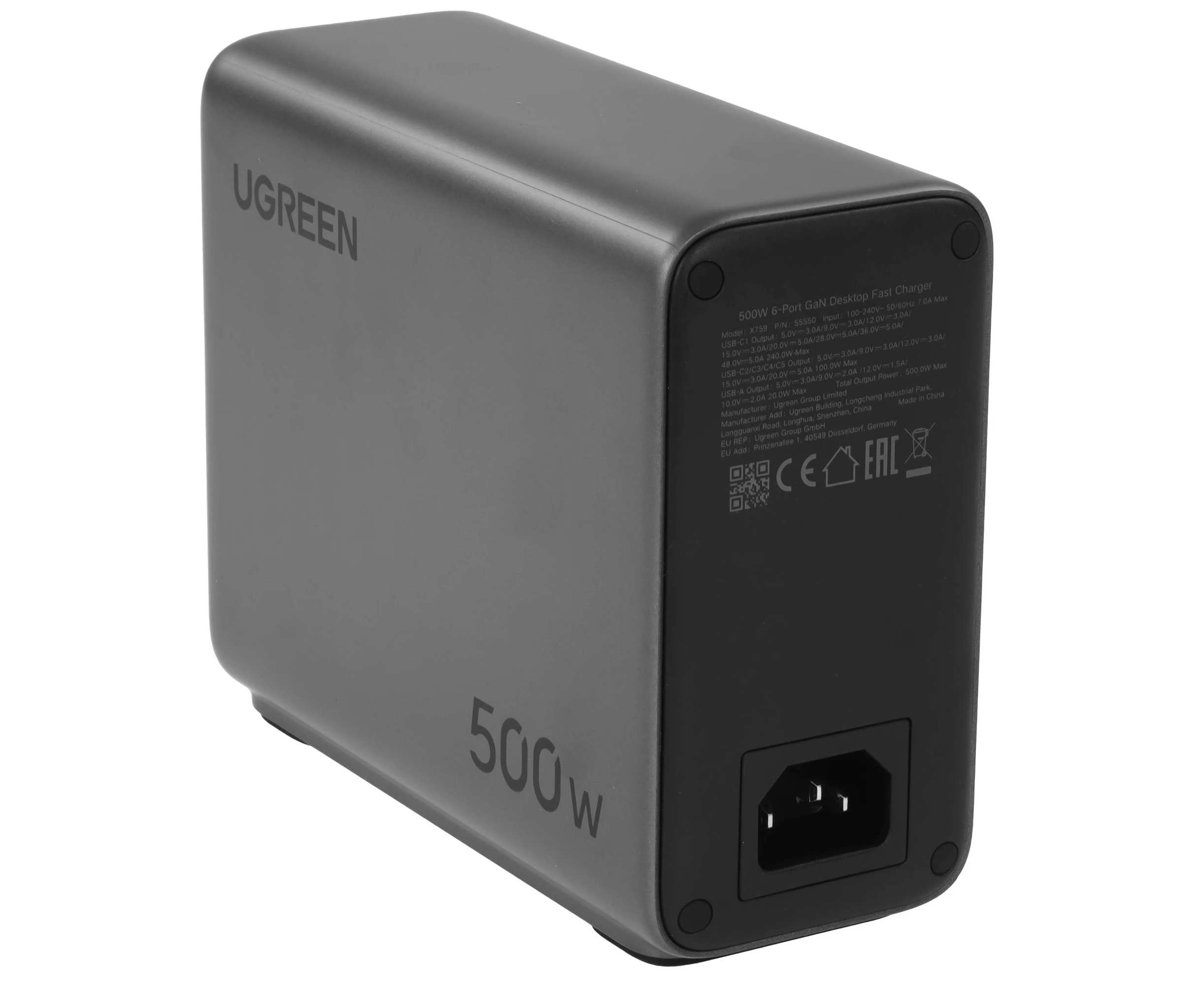 СЗУ UGREEN X759 (55550B) 500W 6-Port 1*USB-A&5*USB-C GaN Desktop Fast Charger EU: серый космос