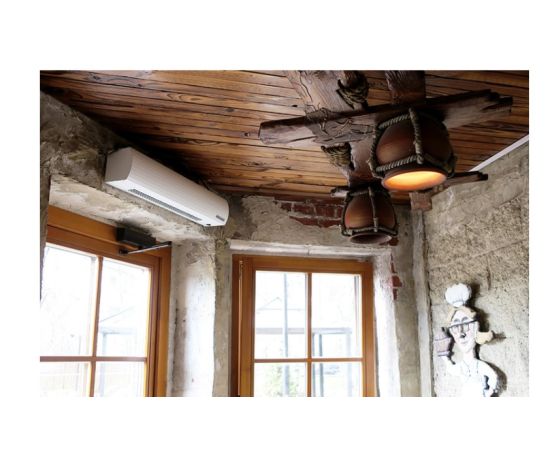 Компактная тепловая завеса для проемов высотой до 1.5 метров. К корпусу завесы подключен питающий кабель длиной 1.6 метра, с евровилкой. Размеры корпуса 705 x 140 x 130 мм, позволяют разместить воздушно-тепловую завесу в ограниченном пространстве над окнами выдачи таможенных пунктов, охраны, пекарен, бистро, магазинов, киосков .Верхнее всасывание воздуха обеспечивает чистоту передней панели. Устройства управления встроены в корпус.