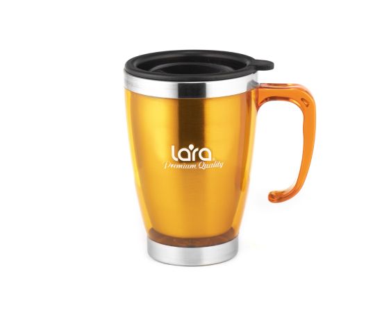 Удобная и яркая термокружка LARA LR04-38 с ручкой подходит для горячих и холодных напитков. Благодаря двойным стенкам напиток дольше сохраняет температуру. Конструкция крышки позволяет без труда снять ее с кружки. Колба изготовлена из нержавеющей стали.