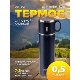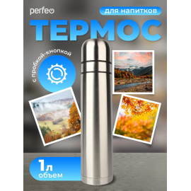 Термос для напитков PERFEO с пробкой-кнопкой, объем 1 л., нержавеющая сталь, (Арт. PF...